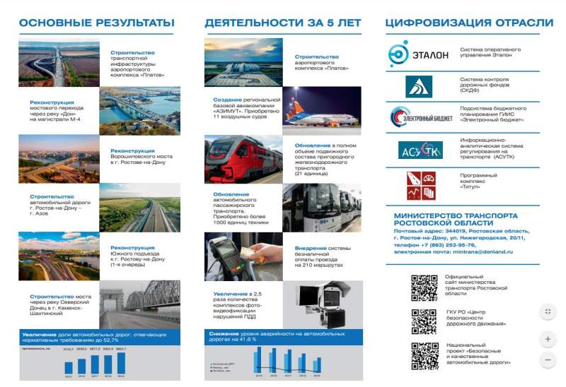 Глава донского минтранса подчеркнул, что одной из важнейших целей нацпроекта является обеспечение безопасности дорожного движения. За последнюю пятилетку число аварий на донских дорогах уменьшилась на 45%.