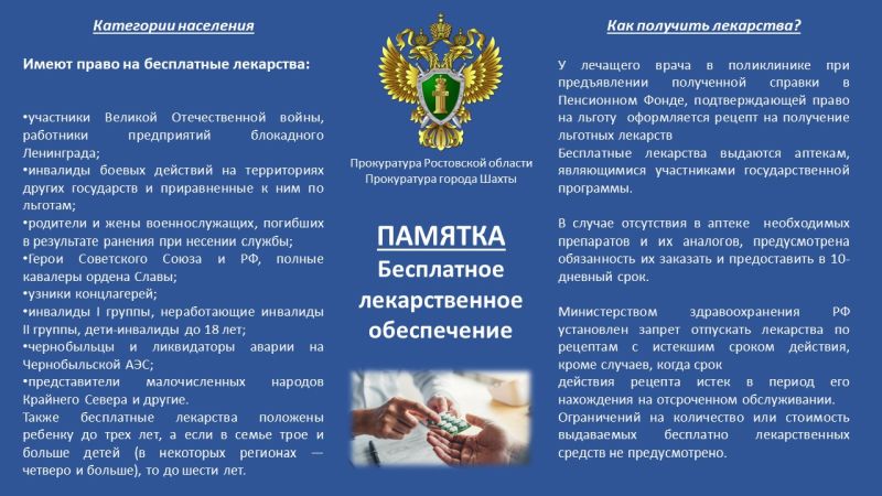 admin 15 декабря 2025 Официально Бесплатное лекарственное обеспечениеПрокуратура города Шахты информирует Фото Е.Врублевской Просмотров: 15