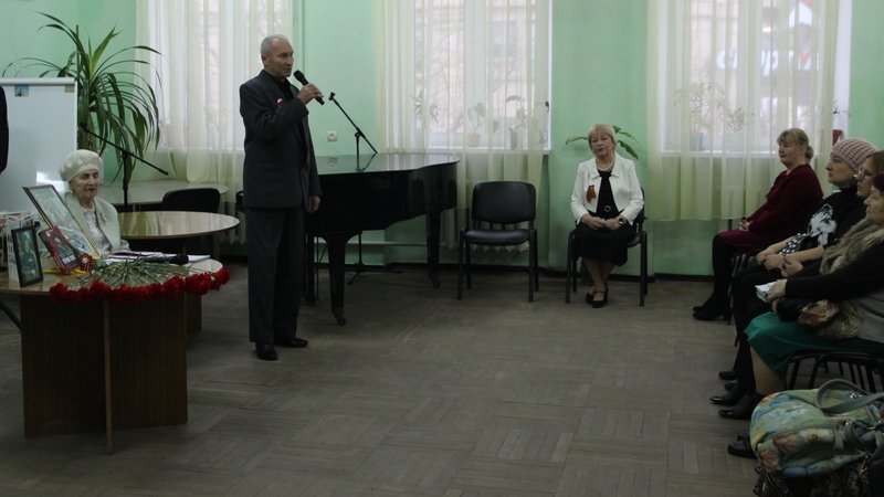 Поэтесса Р. Гончарова рассказала, какое участие принимали мужчины её семьи в разных войнах, и прочитала в память о них стихотворение «Защитники России».