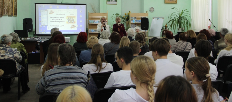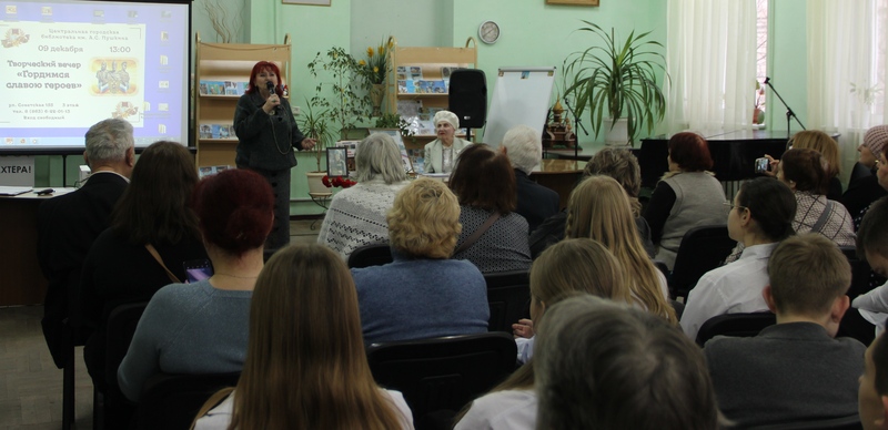 В центральной городской библиотеке имени А. С. Пушкина 9 декабря прошёл творческий вечер «Гордимся славою героев», посвященный Дню Героев Отечества. Вечер открыла Г. А. Ерёмина чтением авторского стихотворения и представлением почетных гостей: