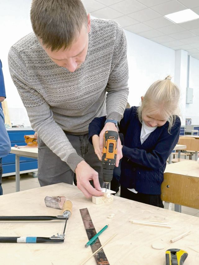 – Она любит мастерить. Мне помогает, когда я что-нибудь делаю. Дочь мне сказала, что в школе начала работать «Дедушкина мастерская», и я решил пойти поработать вместе с дочерью, показать ей, как работать с инструментом. Я занимаюсь строительством, строим дом. Умение что-то делать своими руками дочери всегда пригодится. Мы любим что-то создавать вместе. Нам это интересно.
