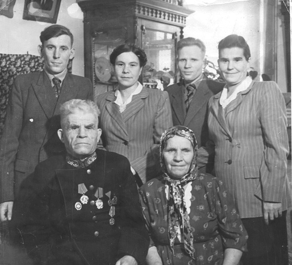 Ефим Николаевич с внуками Любой, Валерой, Сережей и Вовой.