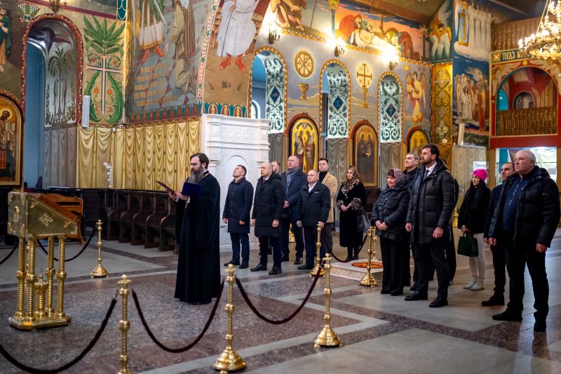 Особую часть программы составило посещение депутатами Покровского кафедрального собора. Экскурсия для гостей, которую провел настоятель собора иерей Александр Теличкин, охватила историю создания храма, тяжелый период лихолетия и запустения, а также современный этап возрождения собора.