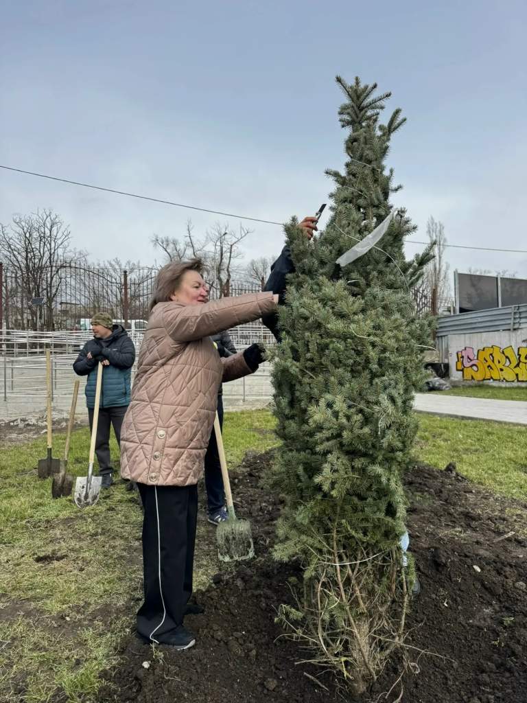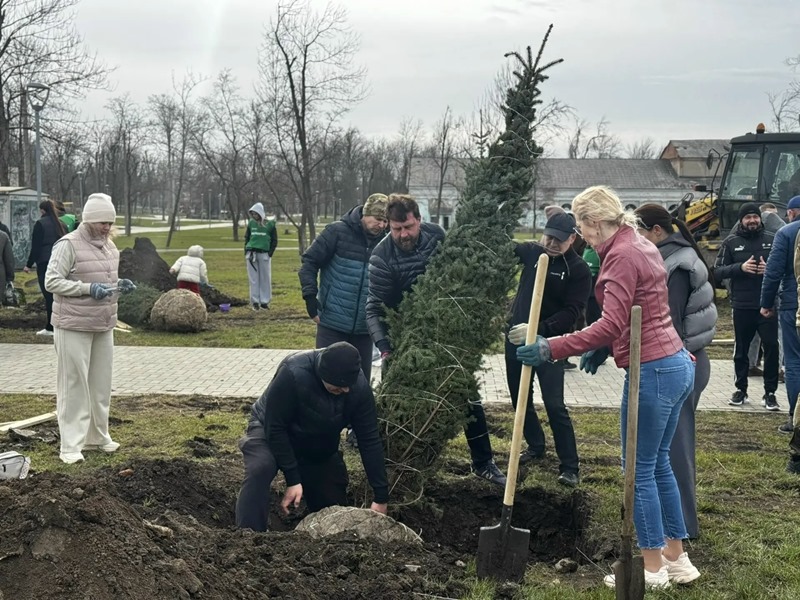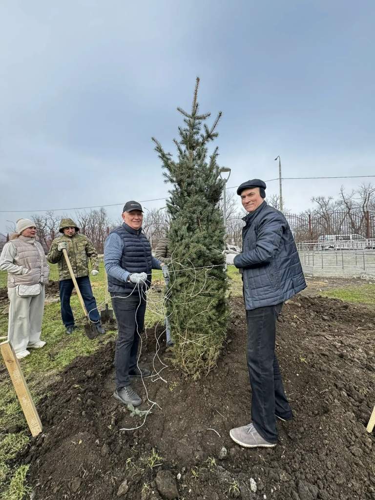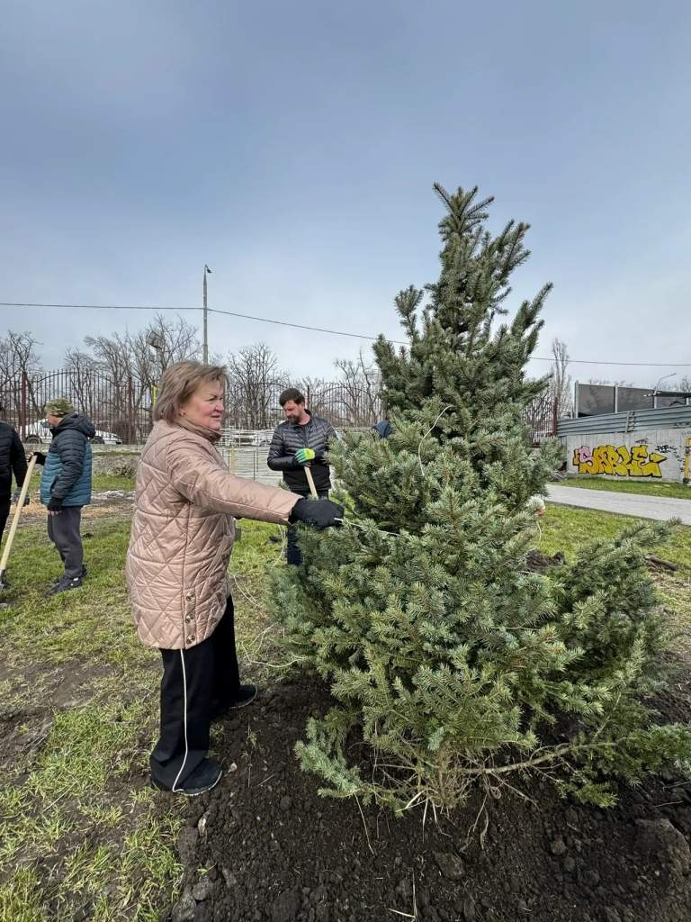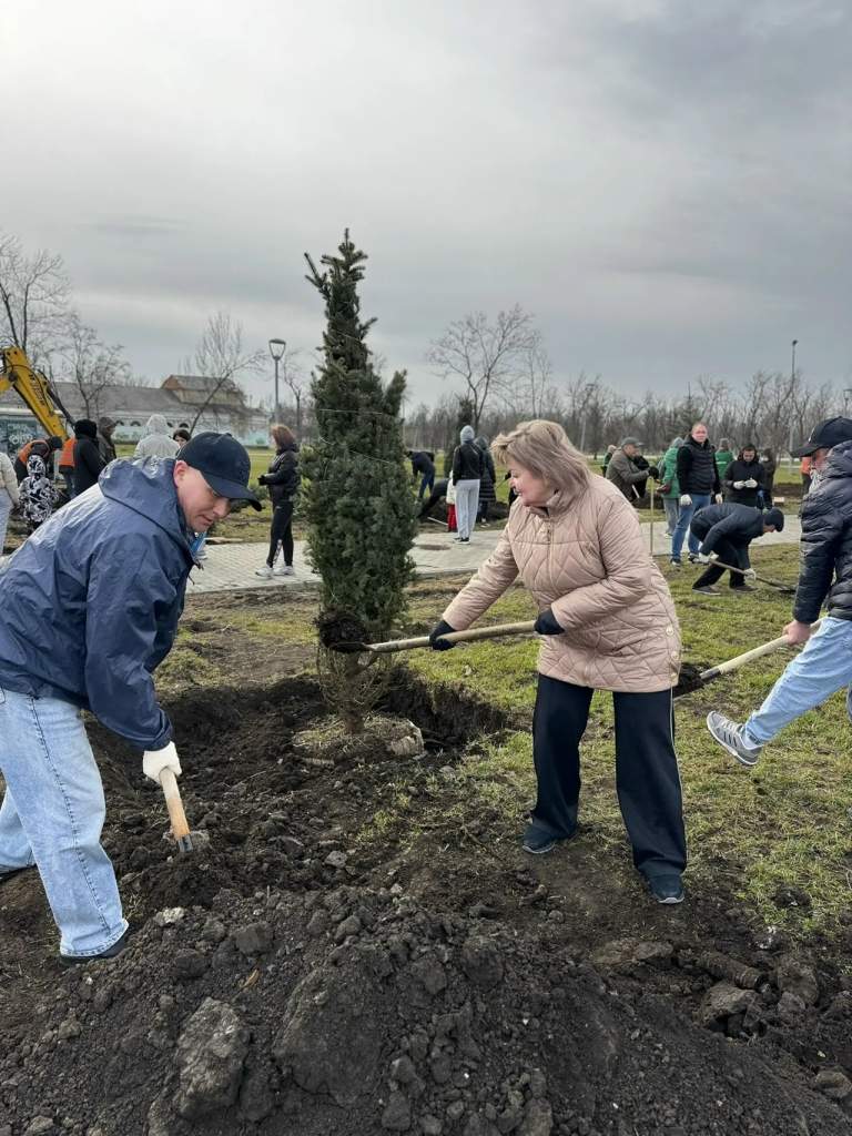 В нем приняла участие глава города Шахты Людмила Владимировна Овчиева. Она лично поддержала масштабное озеленение в Александровском парке, посадила канадскую ель.