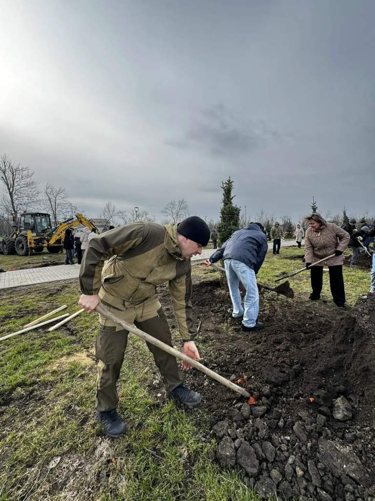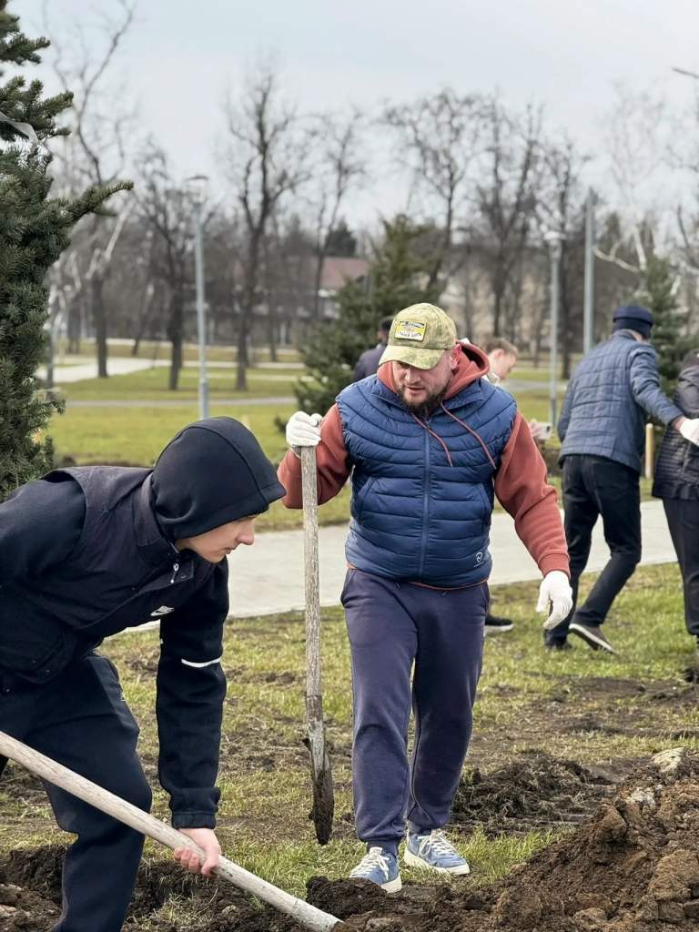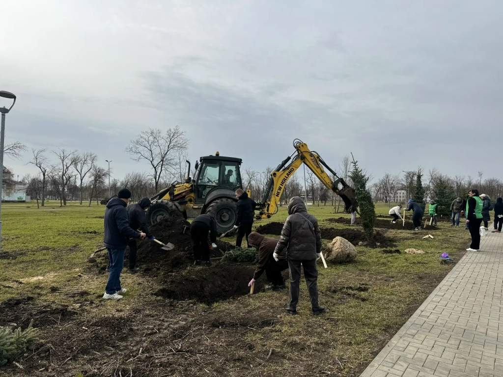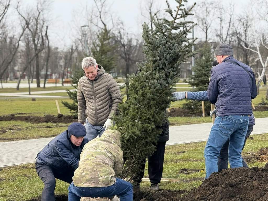 В нем приняла участие глава города Шахты Людмила Владимировна Овчиева. Она лично поддержала масштабное озеленение в Александровском парке, посадила канадскую ель.