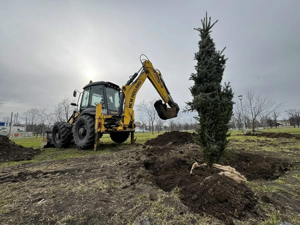 Для высадки деревьев с применением техники заранее были подготовлены посадочные лунки, которые обеспечат оптимальные условия для приживаемости и дальнейшего роста молодых елей.