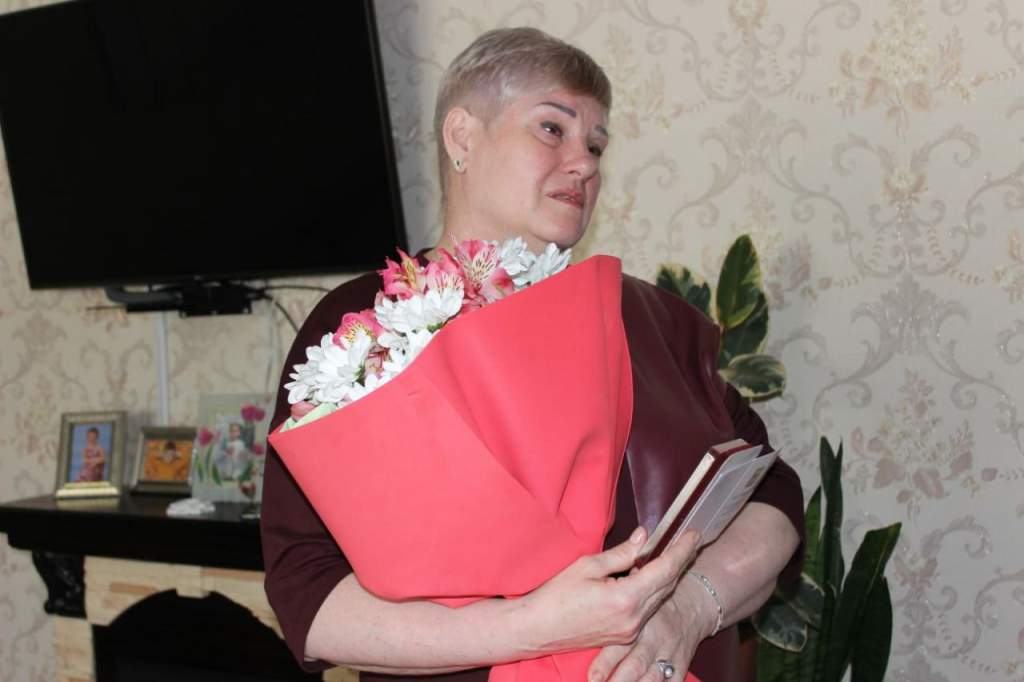 Людмила Овчиева вручила Светлане Викторовне орден Мужества за подвиг ее сына, который выполнял боевую задачу, и поздравила с юбилейным Днем Победы.