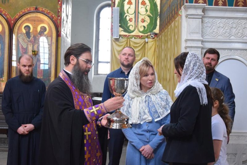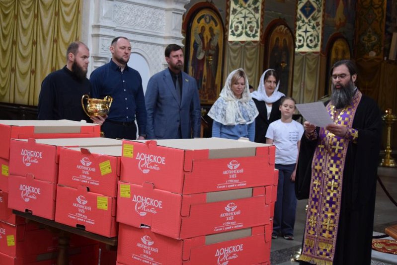 Обряд освящения провел благочинный Александровск-Грушевского округа Александр Теличкин. В дар для главного храма города от Екатерины Стенякиной и руководителя фонда «Славяне» Яны Евтушенко передана церковная, серебряная чаша.