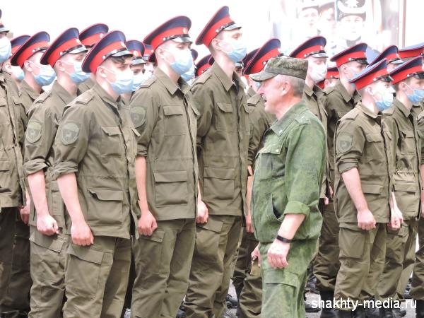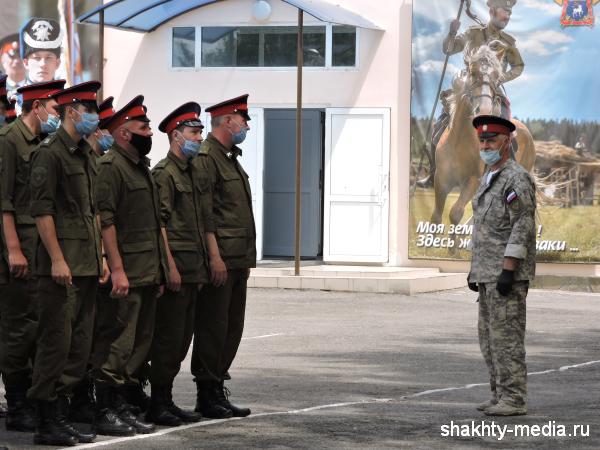 Перед отправкой в столицу в Шахтинском казачьем кадетском корпусе прошло построение участников парада. Несколько напутственных слов перед дальней дорогой сказал казакам атаман Всевеликого войска Донского Виталий Бобыльченко.