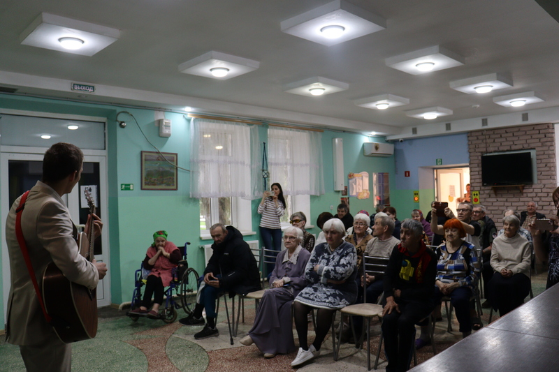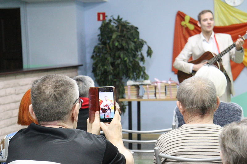 «Девочки, а у вас есть документальные книги про Великую Отечественную войну? Привезете в следующий раз?», «А я вот поэзию люблю». Пока женщины обсуждали с журналистами литературу, мужчины долго беседовали с артистом и предлагали, какие песни Руслан может исполнить на следующем концерте.