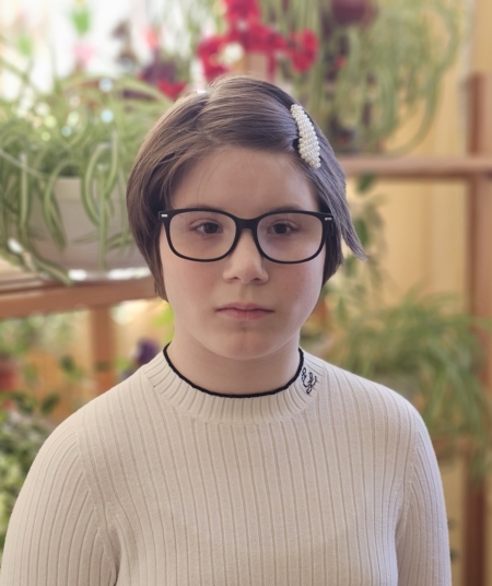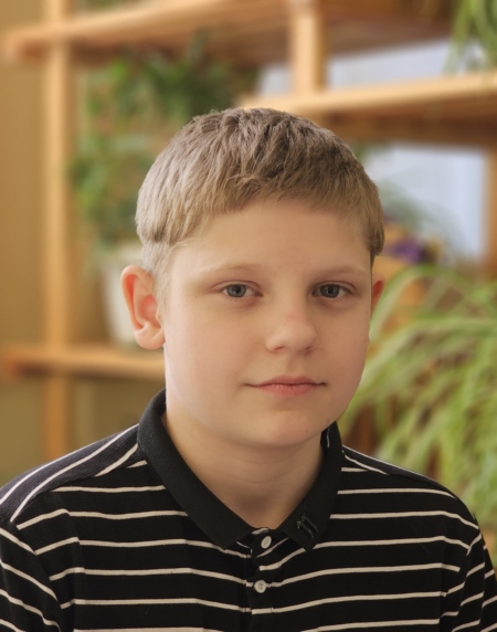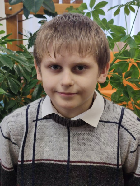 Любознательный, активный, открыт к общению. С готовностью откликается на просьбы о помощи сверстников и взрослых. Обладает хорошей памятью. С удовольствием учит стихи и декламирует их на сцене в узком кругу значимых для него людей. Любит подвижные игры.