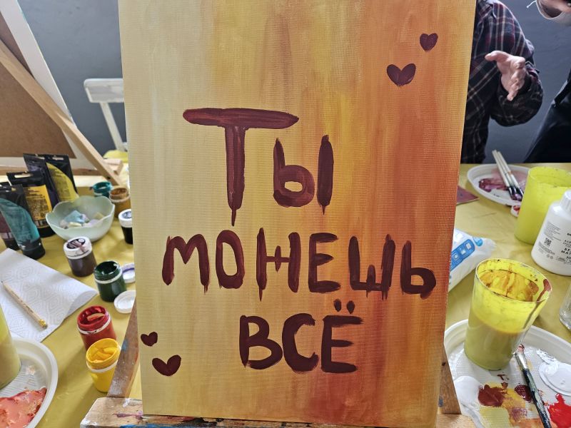 -Под руководством опытного художника женщины создавали собственные произведения, при этом ключевым элементом стала аффирмация – фраза, написанная на холсте, – рассказала культорганизатор клуба Елена Бурдыленко. – Эти искренние слова стали для них источником энергии и опоры.