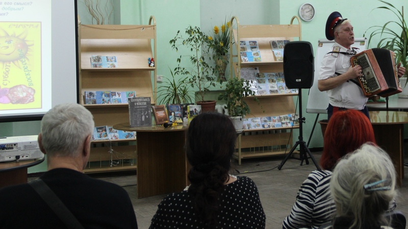 Также со стихами о доброте выступили А. Неганова и И. Малышева, а А. Фахреев исполнил казачьи песни, которые продолжили вечер.