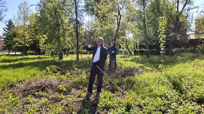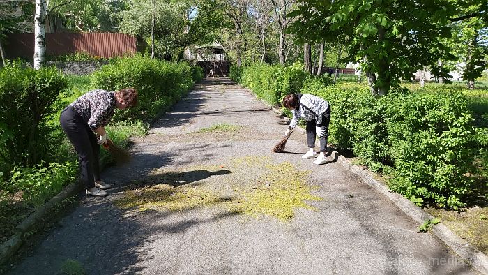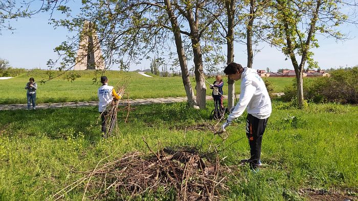 Сегодня было принято решение провести субботник на мемориальном комплексе в поселке Красина. Здесь были убраны сухие ветки и подметена аллея.
