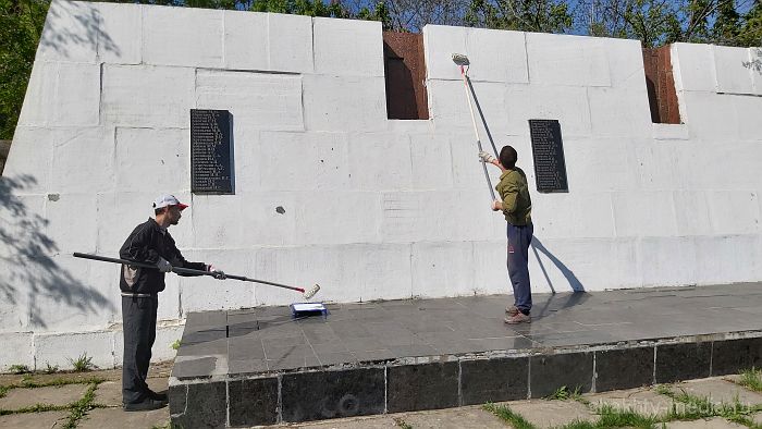 В субботнике на мемориальном комплексе приняли участие также волонтеры Победы и сотрудники департамента и организаций культуры. Они обновили краску на мемориальном комплексе.