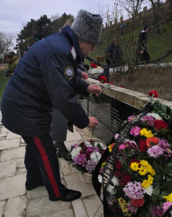 Мемориальную доску открыли с участием донской казачьей делегации, возглавляемой атаманом Всевеликого войска Донского Виталием Бобыльченко.