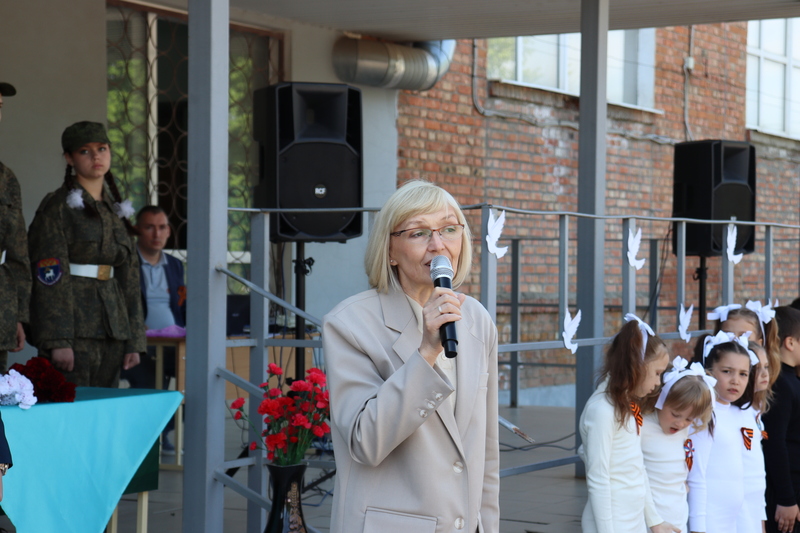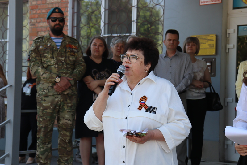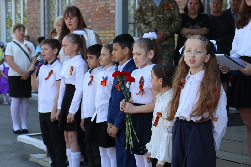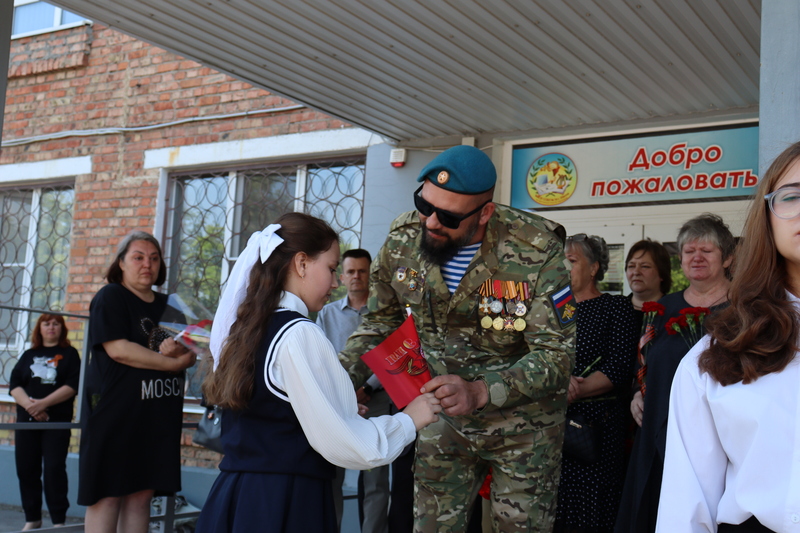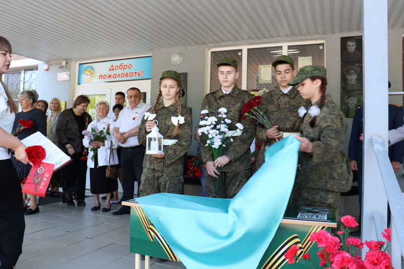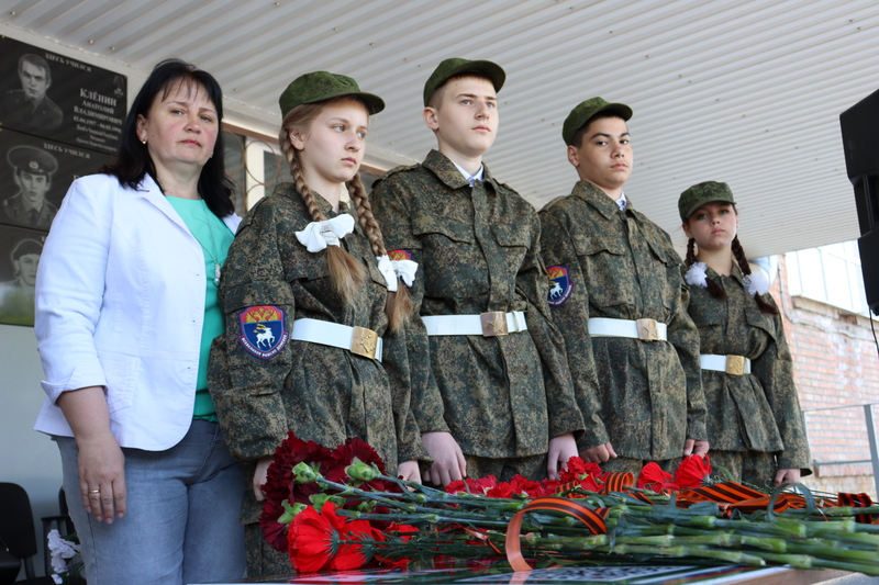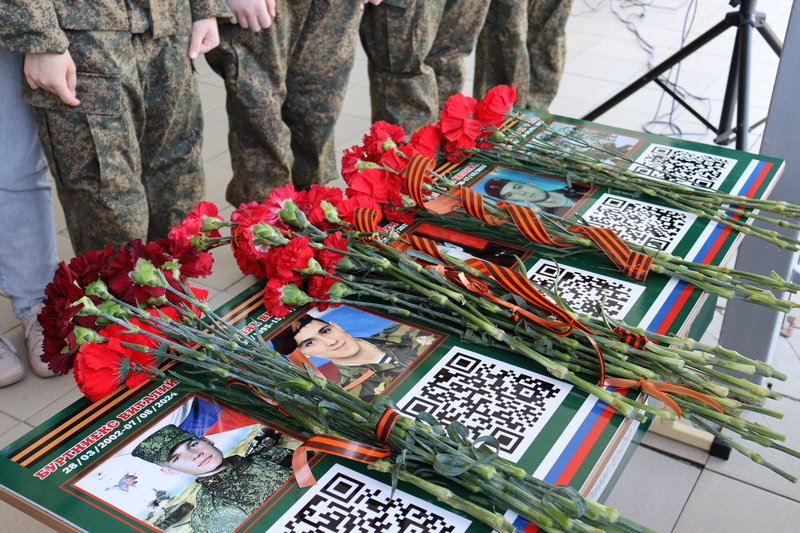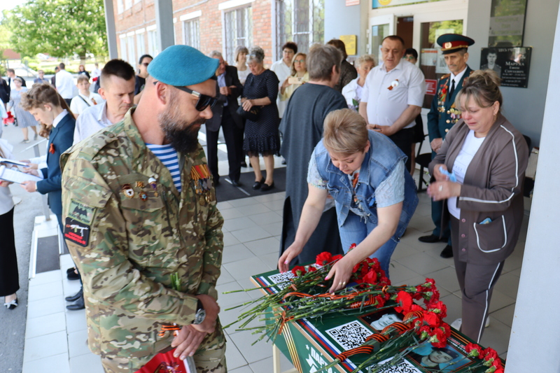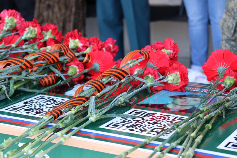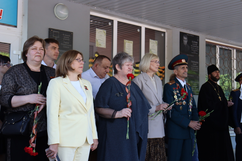 Почетное право открыть «Парту Героя» и возложить цветы предоставили юнармейцам и родственникам.