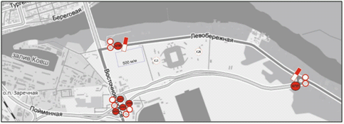 Схема размещения остановочных пунктов автобусов – шаттлов на маршрутах