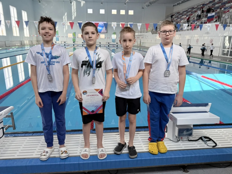 Эстафета мальчиков 4Х50 м вольным стилем (10 лет и младше) слева направо: Архип Куляс, Дмитрий Марченко, Максим Кашковский и Кузьма Очиев