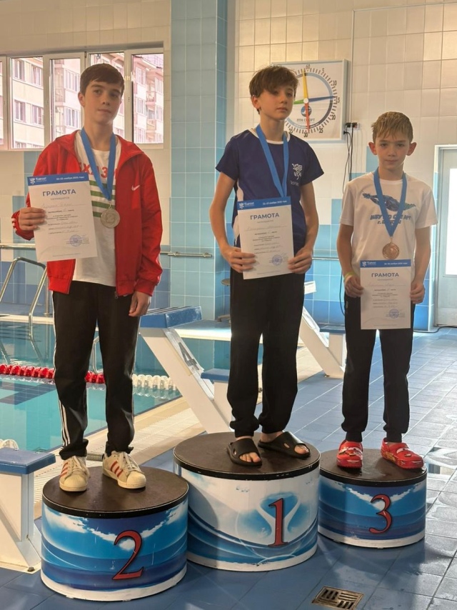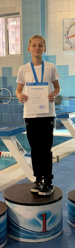 — Егор Рогозин — золото на дистанции 100 метров на спине (11-13 лет, тренер зтр России Юлия Кобелева);
