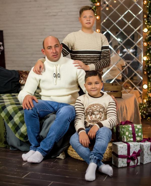 Отец двоих сыновей, самый лучший муж. Ради своих сыновей готов на все: и в огонь и в воду. Дети очень любят и гордятся своим папой. С праздником тебя, наш дорогой папа и муж!