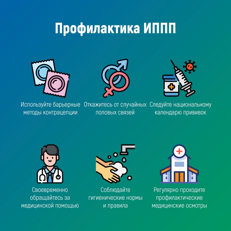 Пути первичной профилактики, направленной на дальнейшее снижение заболеваемости инфекциями, передаваемыми половым путем, определяются информированием населения, в первую очередь молодежи, организацией доступной и удобной для пациентов работы центров для профилактики и лечения ИППП, проведением регулярных скринингов и профилактических обследований на ИППП для своевременного выявления малосимптомных и бессимптомных форм заболеваний, пропагандой здорового образа жизни, ответственного отношения к своему здоровью.