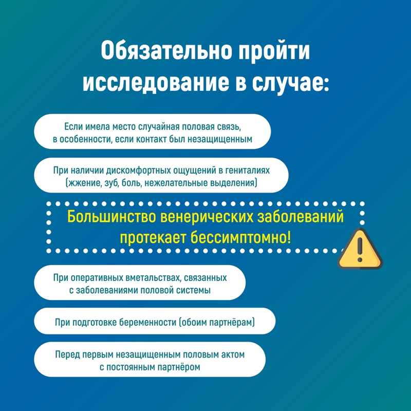 Для своевременной диагностики необходимо периодическое, в том числе профилактическое, обследование на ИППП, что позволит снизить распространение инфекций и риск развития осложнений и нарушений репродуктивной функции.