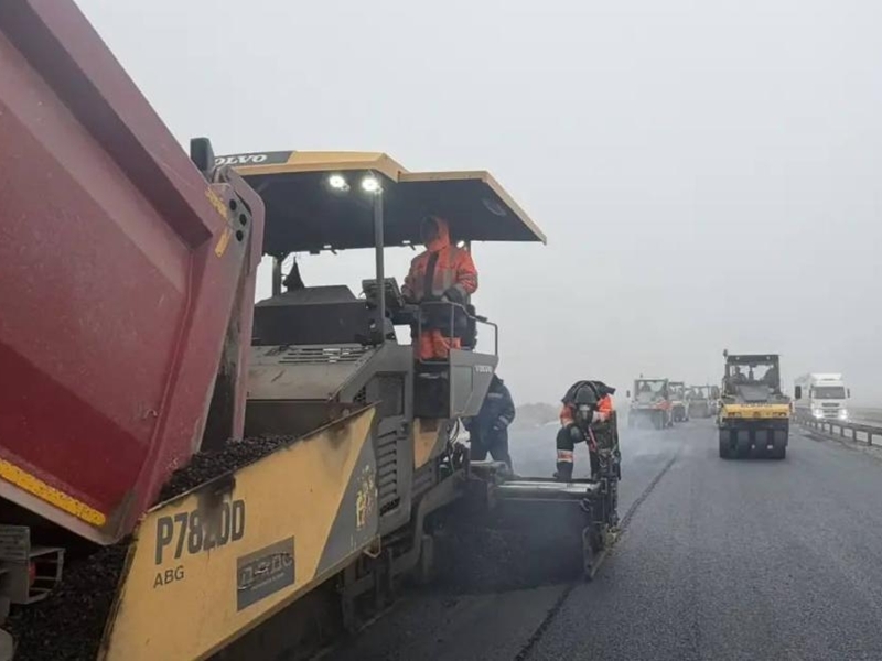 Также в ходе работ выполнено устройство дорожной одежды на участке протяженностью 23 километра на всю проектную ширину на шести полосах движения.