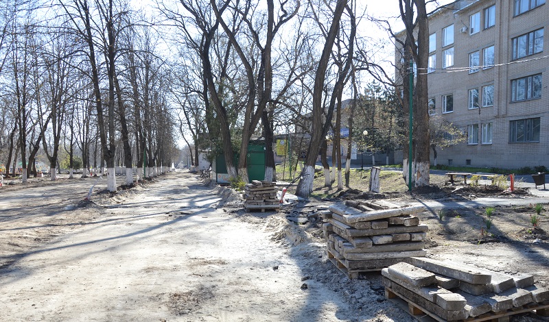 В 2019 году, в ходе первого этапа, выполнены подготовительные работы (частичный демонтаж плиточного и асфальтового покрытий, поребрика, корчевание пней, вырубка и опиловка деревьев), а также устройство плиточного покрытия центральной аллеи, мемориала. Кроме того, произведено устройство системы видеонаблюдения и наружного освещения (работы по прокладке кабеля); устройство наружных сетей водоснабжения и канализации, автополива.
