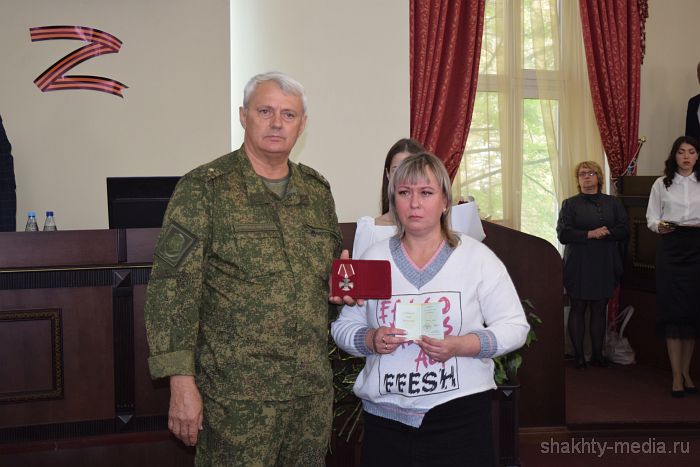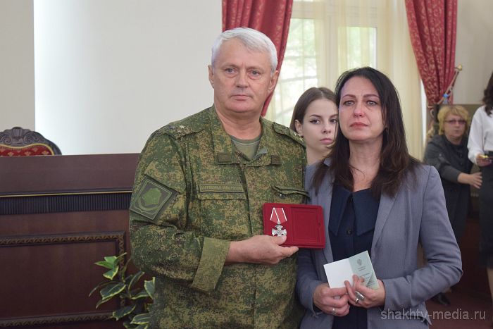 Награды семьям погибших героев вручил военный комиссар города Шахты и Октябрьского района Иван Вансович.