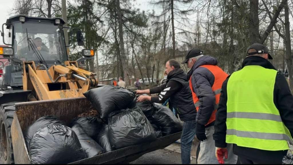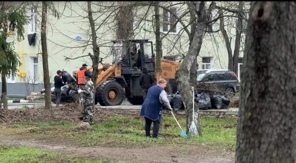 На территории был наведен порядок, собрана листва, проведена очистка газонов, дорожек, был убран мусор. Его тут же вывезли на машинах.