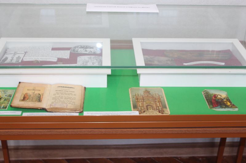 В рамках форума в экспозиционном зале университета старшими преподавателями кафедры «Социальные и гуманитарные науки» Ильей Геннадиевичем Шарковым и Натальей Михайловой была презентована выставка в двух экспозициях: «Евлогии Святой Земли и Афона на Дону» и «Активисты Императорского Православного Палестинского Общества на Дону и в Приазовье в позднеимперский период». Евлогии – греческое наименование святынь-благословений, привозимых паломниками из далёких благочестивых странствий. На выставке представлены домашние иконы XIX – начала XX вв., привезённые донцами в своё время из Святой Земли и с Афона в качестве благословений, а также другие паломнические святыни и реликвии, документы, фотографии, книги, перламутровый аналойный крест арабской работы XIX века и многое другое. Отдельной страницей выставки стали издания на тему истории ИППО, монографий старшего преподавателя, древлехранителя Шахтинской епархии И.Г. Шаркова. В своём выступлении на презентации выставки Илья Геннадиевич отметил отличие восточного, православного отношения к святыне и паломничеству от западного, рассказал об истории появления благословенных икон со Святой Земли и Горы Афона на Дону и на данной выставке в частности, прокомментировал ряд экспонатов.