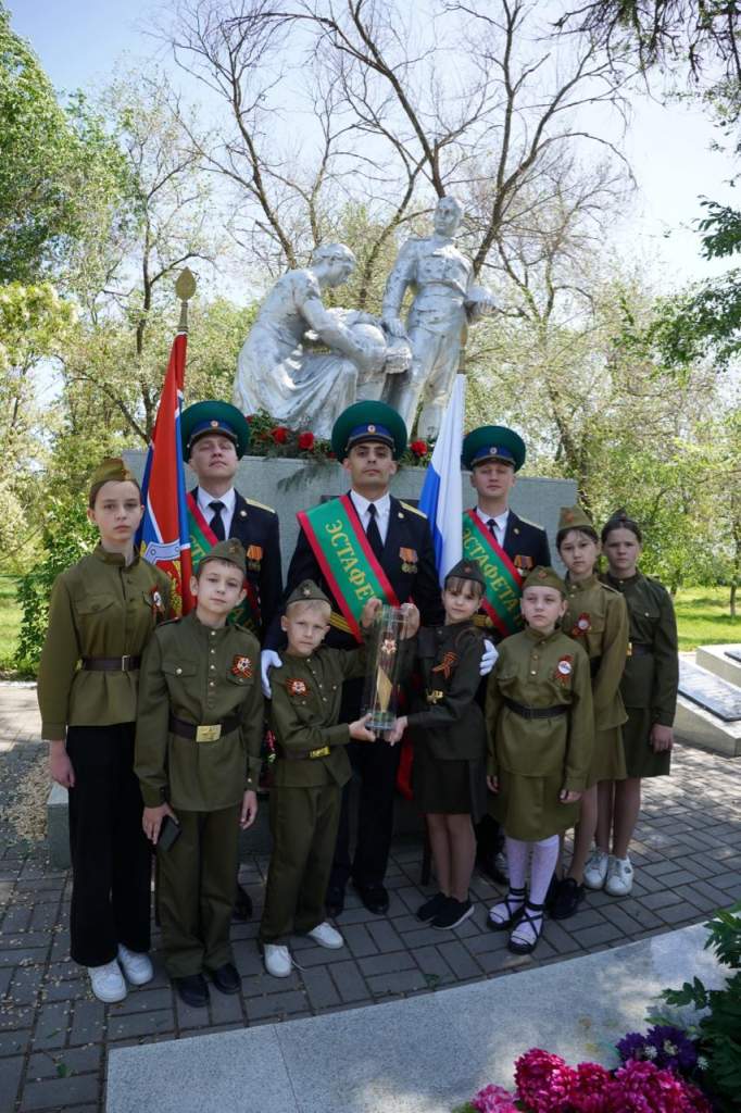 Международная военно-патриотическая акция «Эстафета Победы» посвящена 80-й годовщине Победы в Великой Отечественной войне. Она проходит вдоль Государственных границ стран СНГ. Эстафета организована по инициативе руководства Пограничной службы ФСБ России и Совета командующих Пограничными органами стран СНГ. Ее символ – миниатюрный макет пограничного столба – специального знака для обозначения Государственной границы РФ на местности – с георгиевской лентой и надписью «1945».
