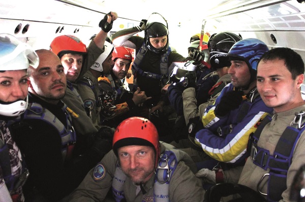 В небе перед прыжками.