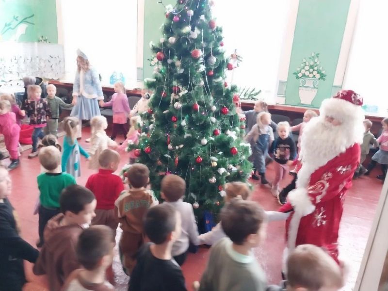 Праздник продолжился танцами и поздравлениями. Зал наполнился радостью и весельем! Дед Мороз раздал подарки всем детям.