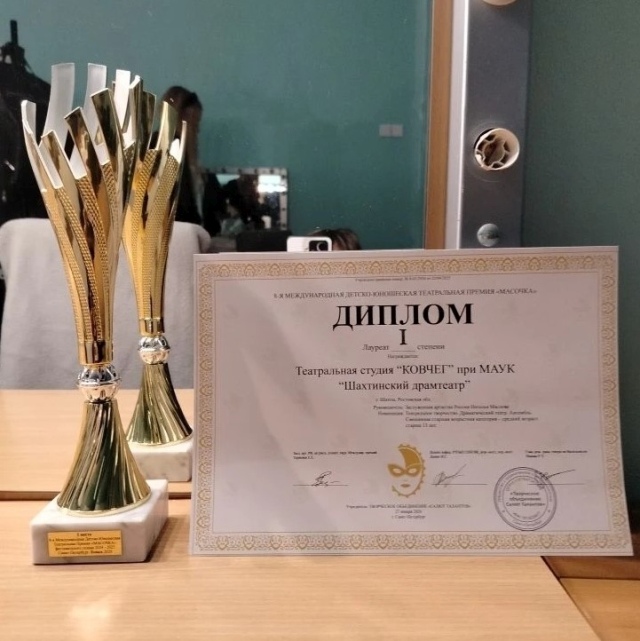 Ученики театральной студии «Ковчег» при Шахтинском драматическом театре под руководством заслуженной артистки России Натальи Масловой стали лауреатами первой степени на престижной 8-й Международной детско-юношеской театральной премии «Масочка»!