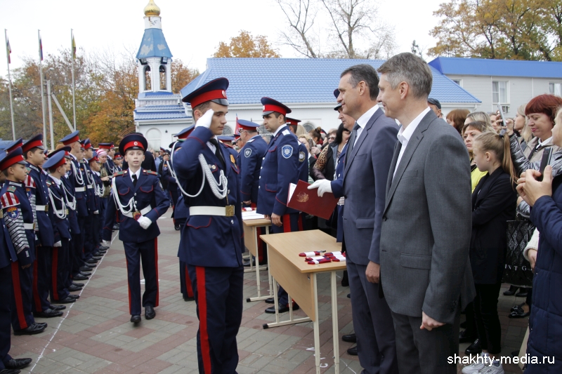 Погоны кадетам вручали заместитель губернатора Ростовской области Михаил Корнеев и глава администрации г. Шахты Андрей Ковалев.