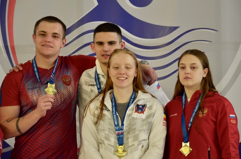 Еще две золотые медали наши спортсмены завоевали в эстафетах 4Х50 метров комбинированной и 4Х50 метров вольным стилем. В состав эстафетных команд входили Кира Смолякова, Дарья Лукьяненко, Евгений Лазутин и Егор Щитковский.