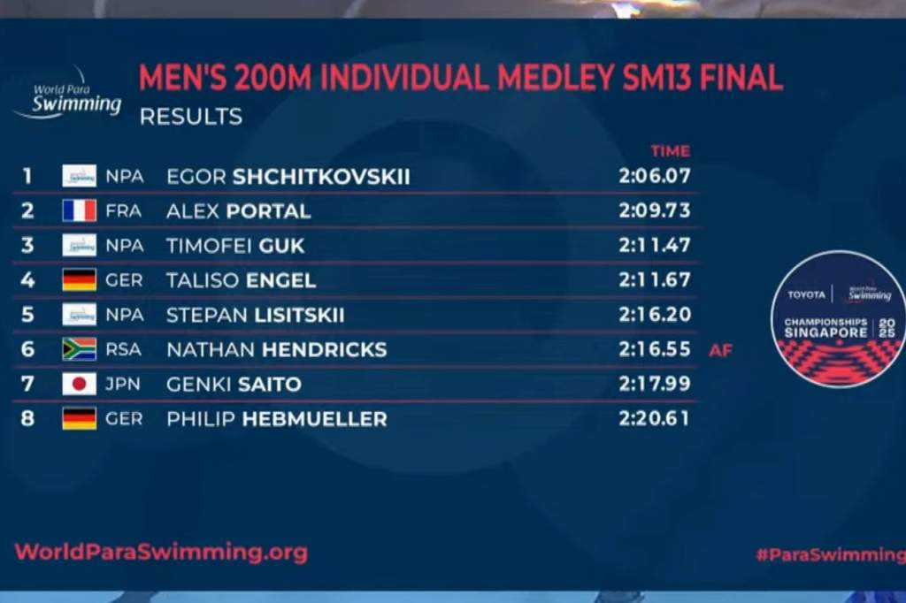 Золотой заплыв Егора Щитковского на чемпионате мира по паралимпийскому плаванию на дистанции 200 метров комплексным плаванием, класс SM13
