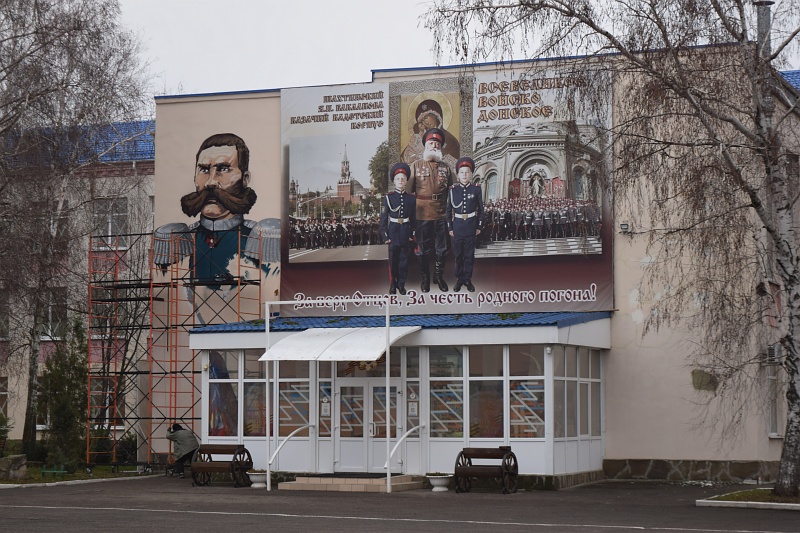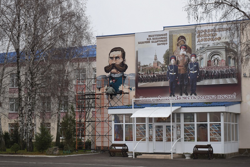 – Проходил Всероссийский конкурс среди учебных заведений со статусом “казачье”. Наша заявка сработала, и мы, став одним из лауреатов, вошли в число участников проекта, – рассказал директор Шахтинского казачьего кадетского корпуса Виталий Бобыльченко. – По всем городам страны, которые стали победителями, проедут бригады художников и оставят на стенах учебных заведений по два мурала. У нас будет три. Мы этот проект давно мечтали осуществить и начали работу. А когда стали победителями этого смотра – конкурса, решили, что все муралы должны быть в едином стиле.