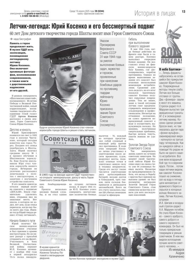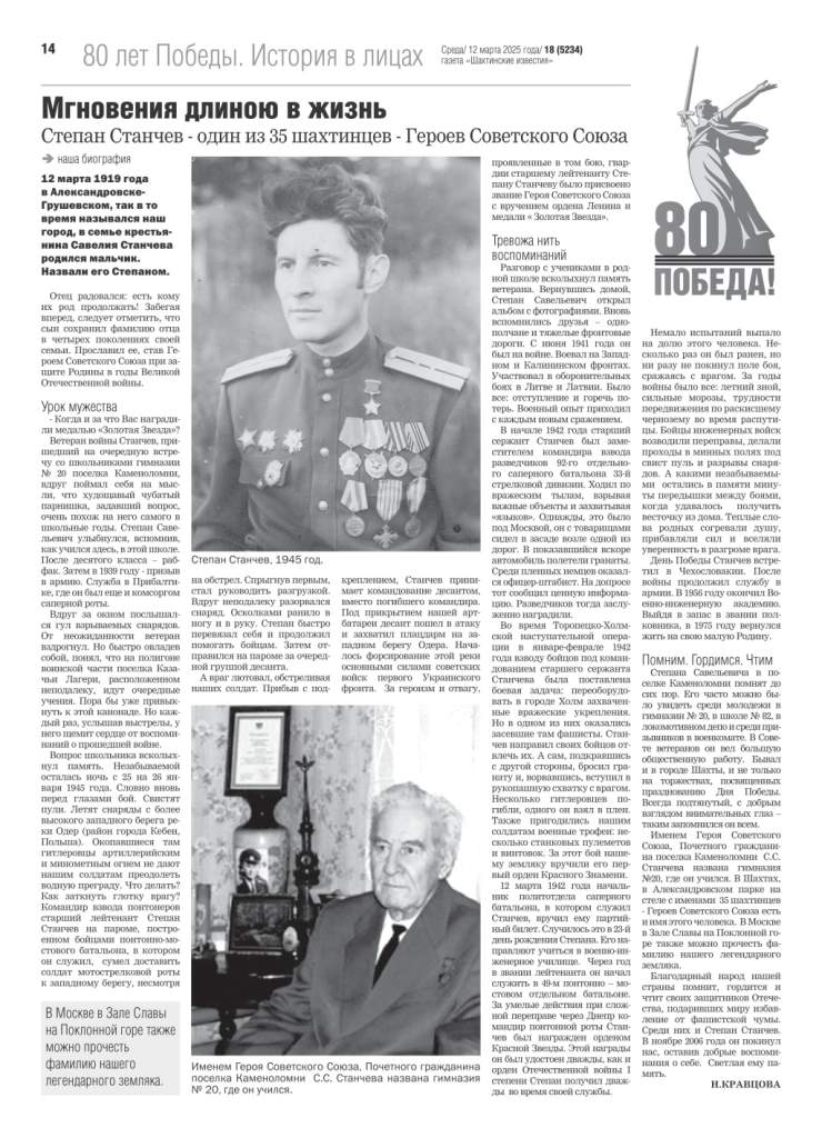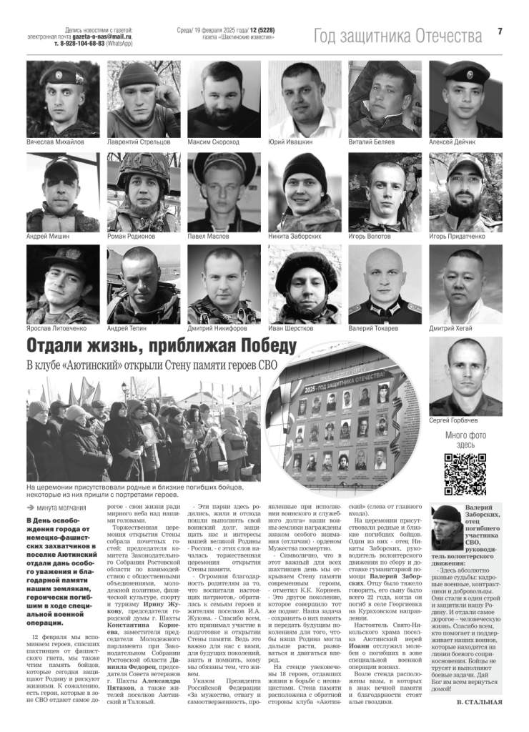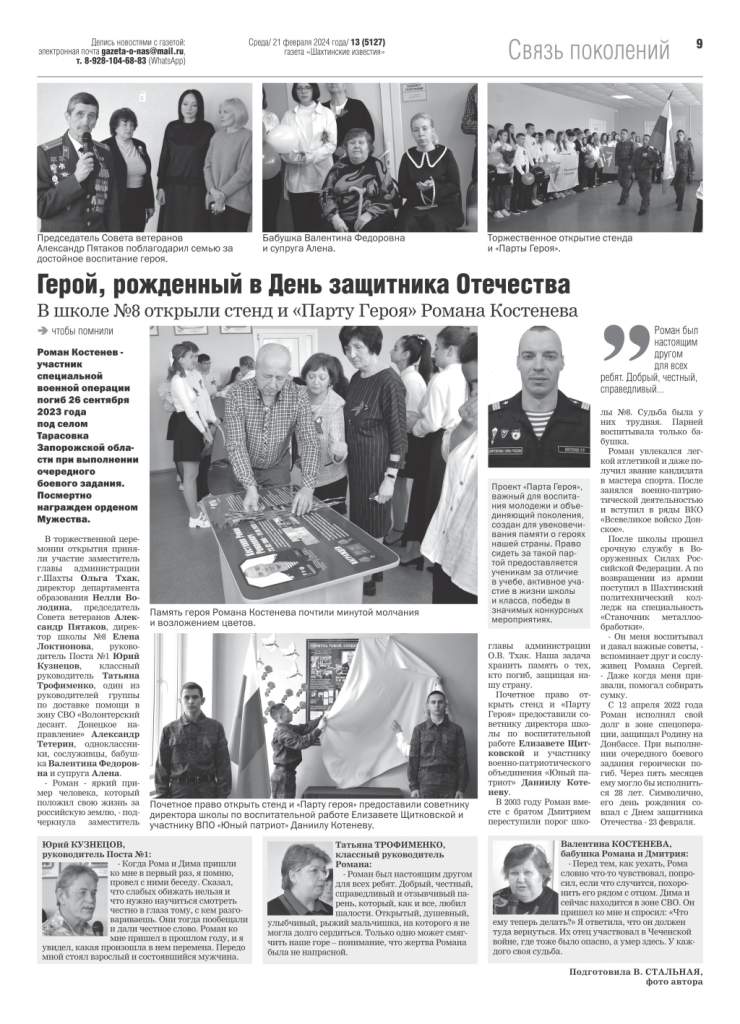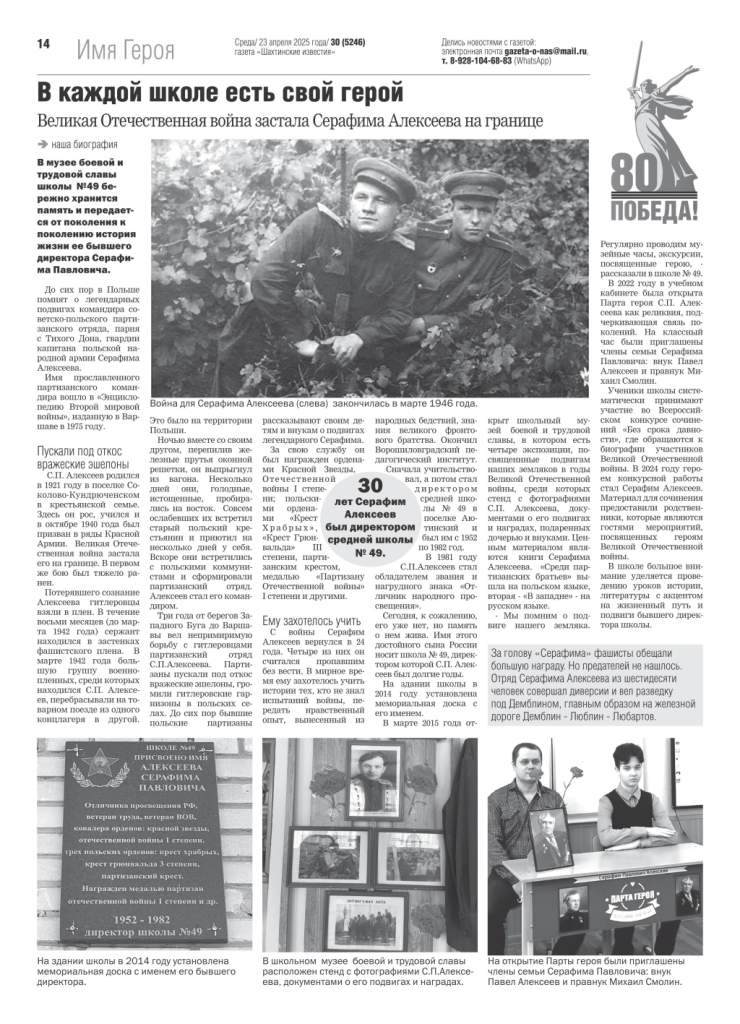 Большинство школ города Шахты носят имена героев Великой Отечественной войны, локальных войн. Газета “Шахтинские известия” реализует посвященный им проект “Имя героя”, рассказывая на своих страницах об их судьбах. Особое внимание – участникам СВО.