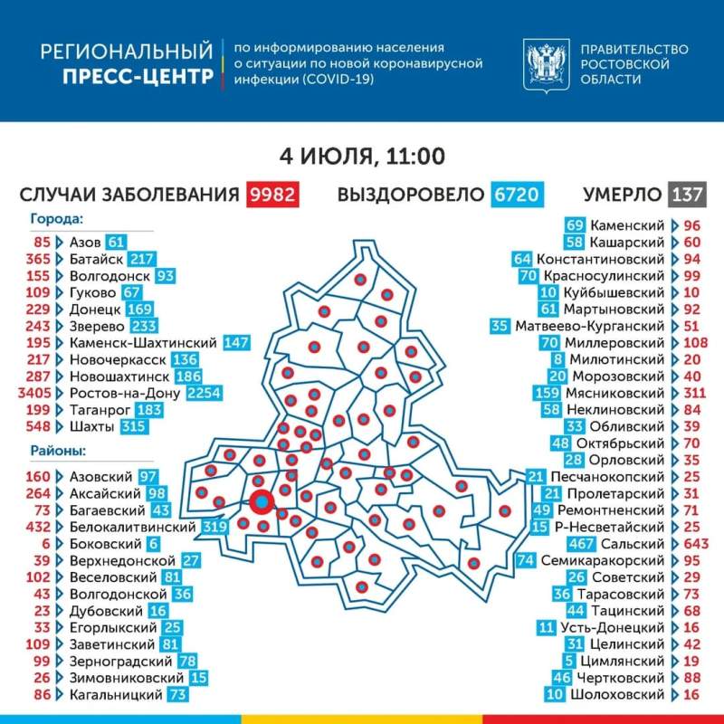 С 14 апреля по 1 июля в городе Шахты зарегистрировано 546 подтвержденных случаев заболевания новой коронавирусной инфекцией – это 235,8 на 100 тыс. населения при региональном показателе заболевших коронавирусом – 237,5. С 1 июля впервые показатель по городу стал ниже регионального.