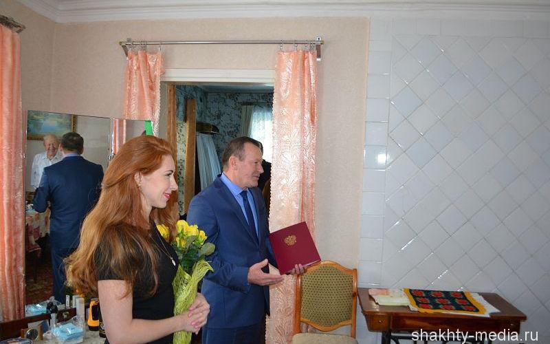 Со знаменательной датой Бориса Ефимовича и Надежду Константиновну поздравили исполняющий обязанности главы администрации города Шахты Владимир Мамонов и начальник отдела ЗАГС Елена Конищева.
