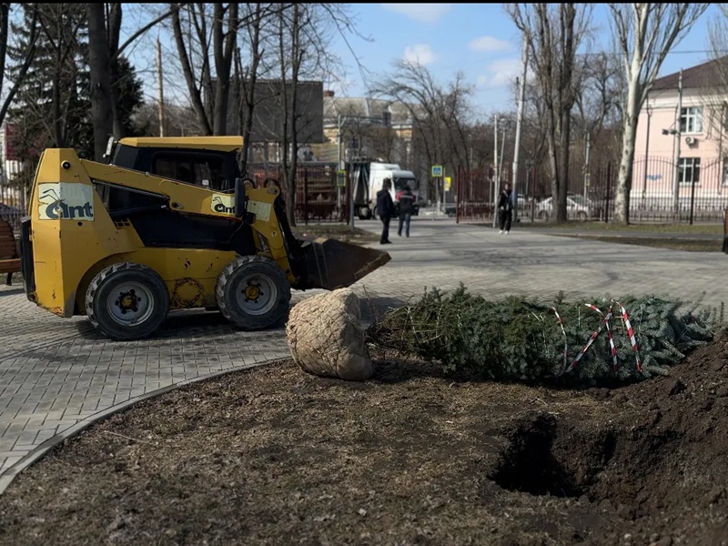 В центральном парке Шахт 19 марта кипела работа. Парк пополнился молодыми пушистыми красавицами – канадскими елями.
