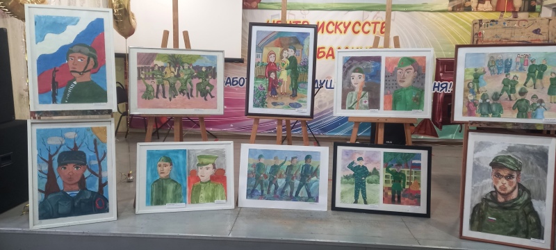 Своими работами учащиеся художественного отделения (преп. Л. Стародубцева) отдали дань памяти и уважения всем воинам, защищавших нашу Родину в Великой Отечественной войне, а также современным героям — участникам СВО.