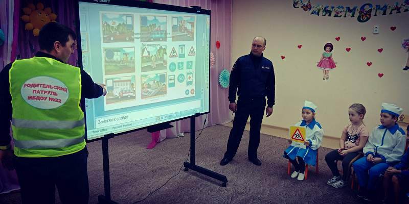 В ходе подготовки к весеннему декаднику инспектором по пропаганде ОГИБДД УМВД России по г. Шахты лейтенантом полиции О.О.Сорокиным проведено занятие по ПДД с воспитанниками детского сада №22.