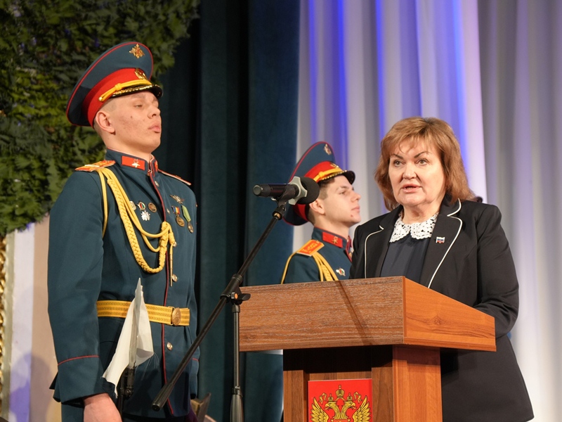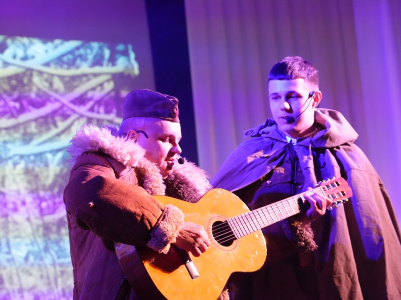 В фойе драматического театра участников мероприятия встречала инсталляция «В снежный памятный февраль», подготовленная городским краеведческим и школьными музеями города. Задавая тон, звучали песни фронтовых лет.
