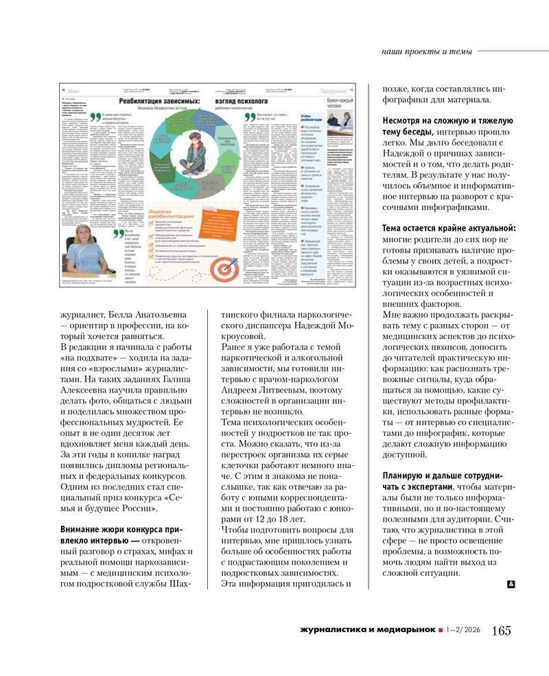 Мы, как юнкоры, сотрудничали с редакцией газеты «Шахтинские известия», которая в дальнейшем и стала моим местом работы, — рассказала журналист в материале журнала «Журналистика и медиарынок».