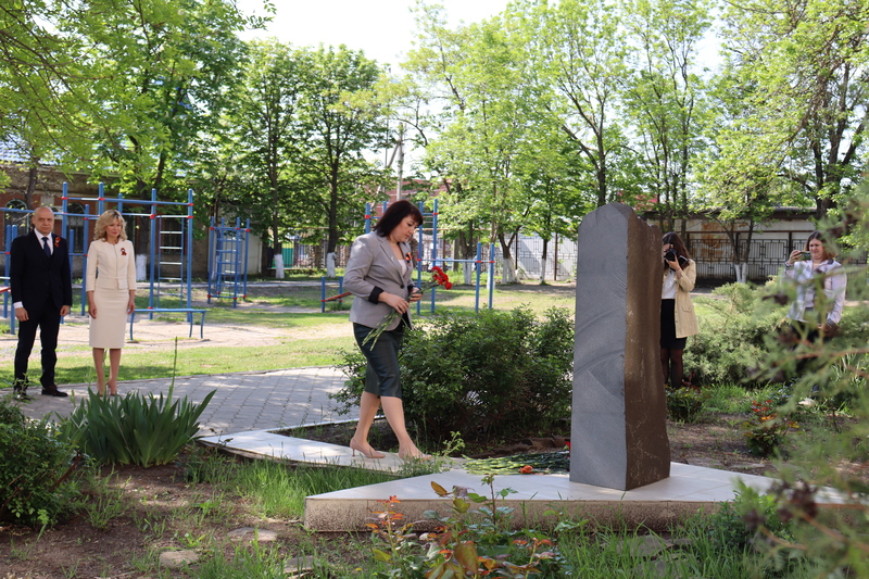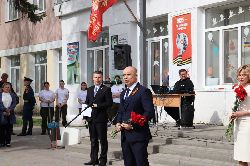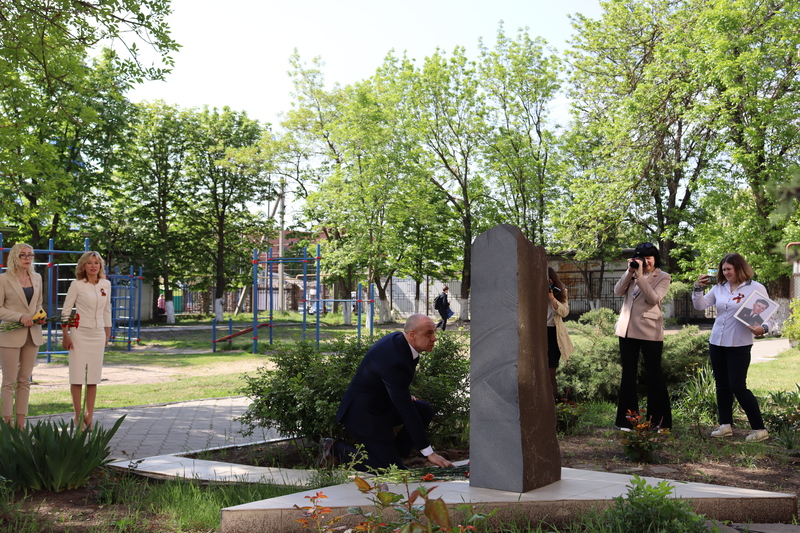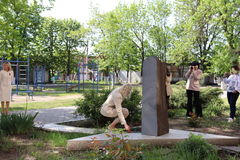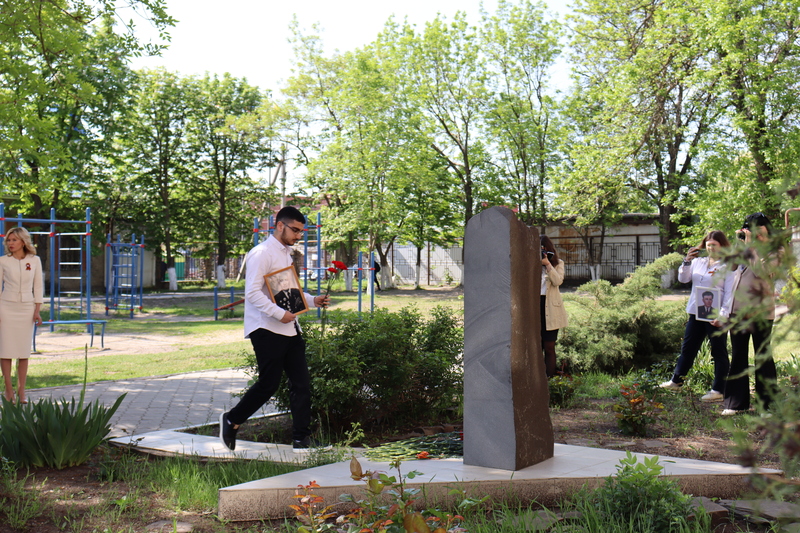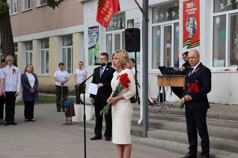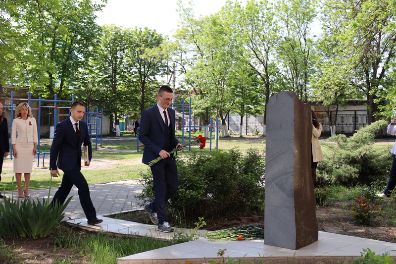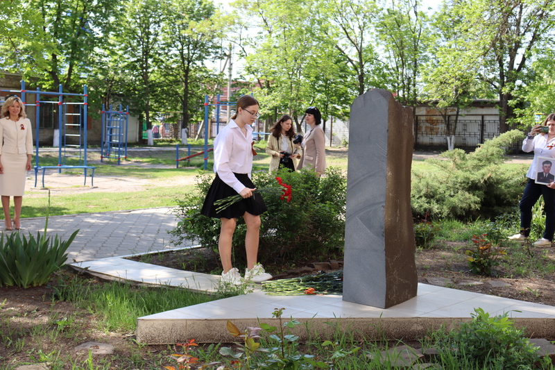Минутой молчания почтили память тех, кто отдал жизнь ради приближения дня Великой Победы. Алые гвоздики в знак благодарности павшим землякам были возложены к мемориалу на территории школы.