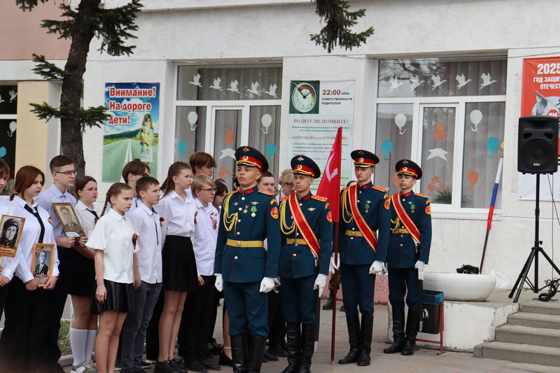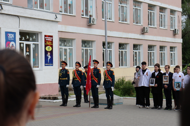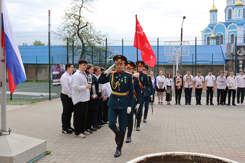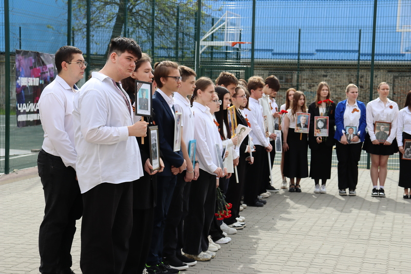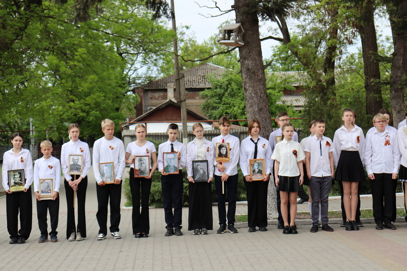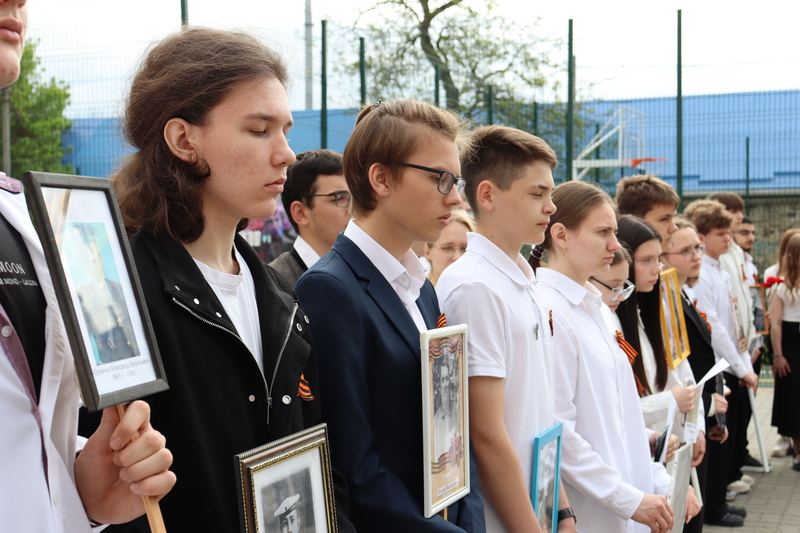 Сегодня ученики гимназии №10 собрались у входа в гимназию, чтобы почтить память предков, отдавших жизни за Победу в годы Великой Отечественной войны. В руках каждый школьник держал портрет своего героя.